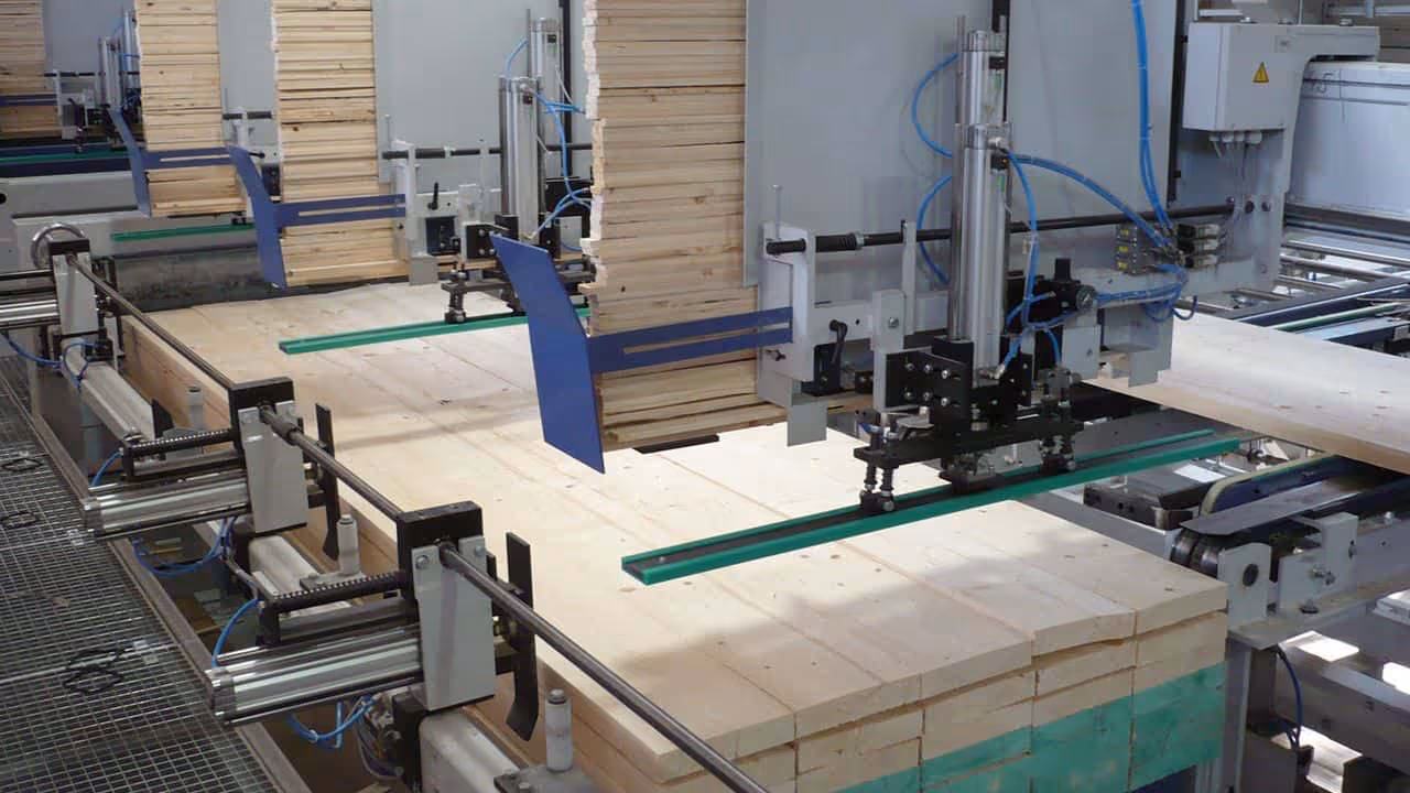 Stable packages are essential for safe transport. This can be achieved for suitable products by using Weinig stacking systems, which achieve ideal sizes and weights. Extra stabilisers can also be included to separate layers or packets.