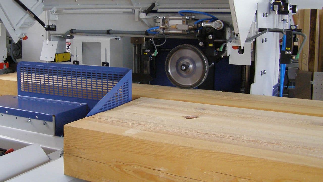 Toevoer van werkstukken naar de verwerkingsmachine van een horizontale dwarsoverdracht met buffer naar een 90 graden invoereenheid met versnellende roleenheid om een gecontroleerde end-to-end-invoer of met gespecificeerde openingen te garanderen.