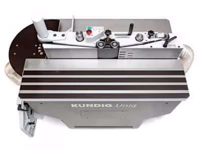 De Uniq-serie is de volwaardige basis van het Kündig productassortiment en deelt alle kenmerken die de Kündig-kantenschuurmachine zijn reputatie als robuust, veelzijdig precisie-instrument hebben gegeven. Onderdeel van de uiterst solide constructie is de oscillerende schuureenheid, die een maximaal oscillatiebereik van 90 mm / 3,5 "biedt en de mogelijkheid om gemotoriseerd te zwenken tussen 90 en 45 °. Alle gangbare randbewerkingen kunnen worden uitgevoerd met behulp van de vier schuurstations van de Uniq kantenschuurmachine.
